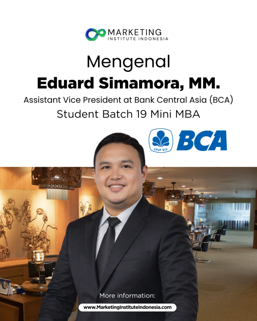 Program Mini MBA Marketing Institute Indonesia (MII) kembali membuktikan relevansinya sebagai program pengembangan manajemen praktis melalui penyelenggaraan Mini MBA Batch Januari 2026. Salah satu peserta yang memberikan review positif adalah Eduard Simamora, yang saat ini menjabat sebagai Assistant Vice President di Bank Central Asia (BCA). Pengalaman beliau menjadi cerminan bagaimana Mini MBA MII dirancang untuk menjawab kebutuhan nyata para profesional.